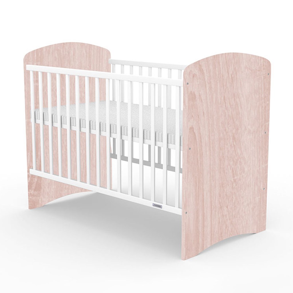 Boki łóżeczka są w 100% wykonane z drewna sosnowego. Zastosowane płaskie szczebelki wysokiej jakości są montowane przy użyciu mocnego kleju wodnego. W jednym z boków została zastosowana funkcja wyjmowanych 3 szczebli. Pozwala to na samodzielne wchodzenie i wychodzenie dziecka w późniejszym etapie życia.
