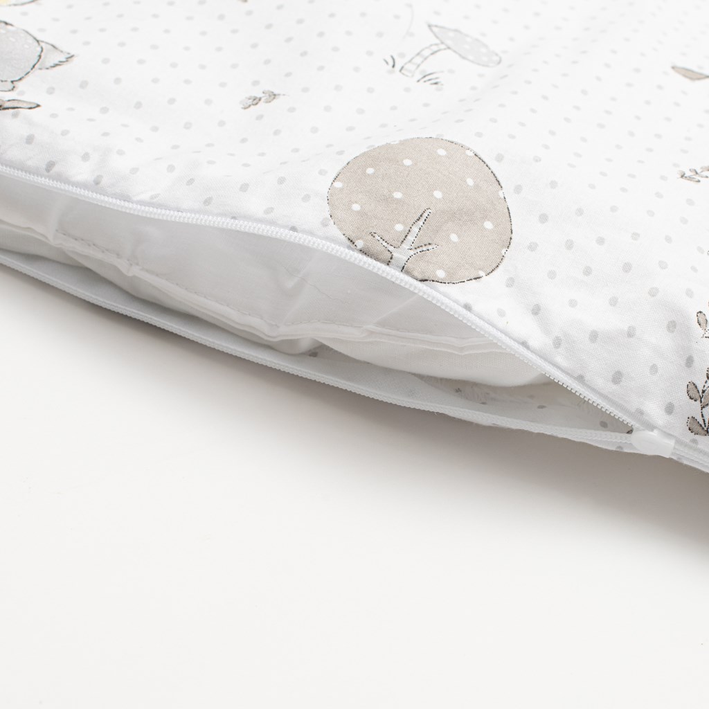 Bawełniany 2-częściowy zestaw do łóżeczka New Baby. Zestaw jest ozdobiony obrazkiem. W skład zestawu wchodzi poduszka i kołderka o rozmiarach 40x60 cm i 100/135 cm. Skład: 100% bawełna.