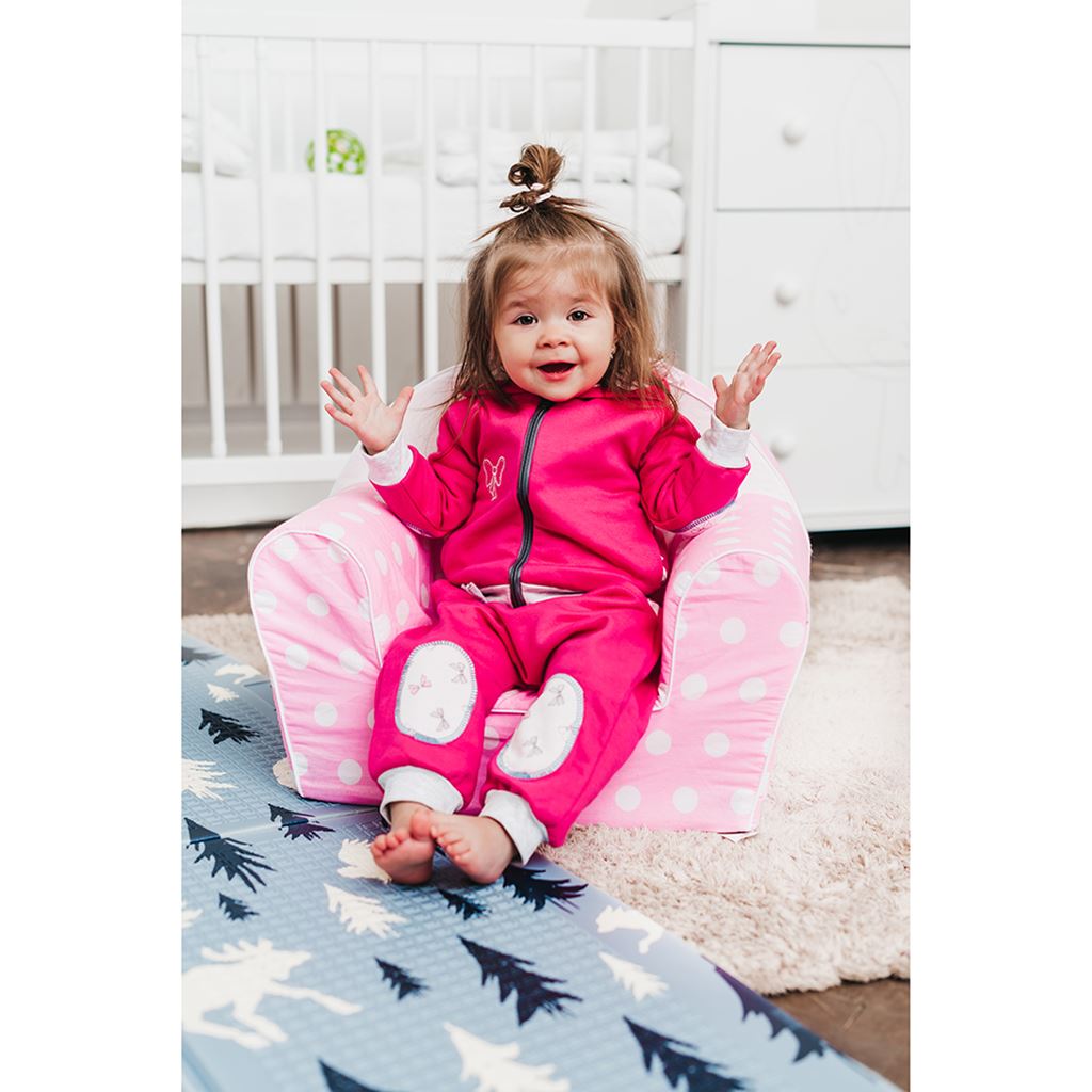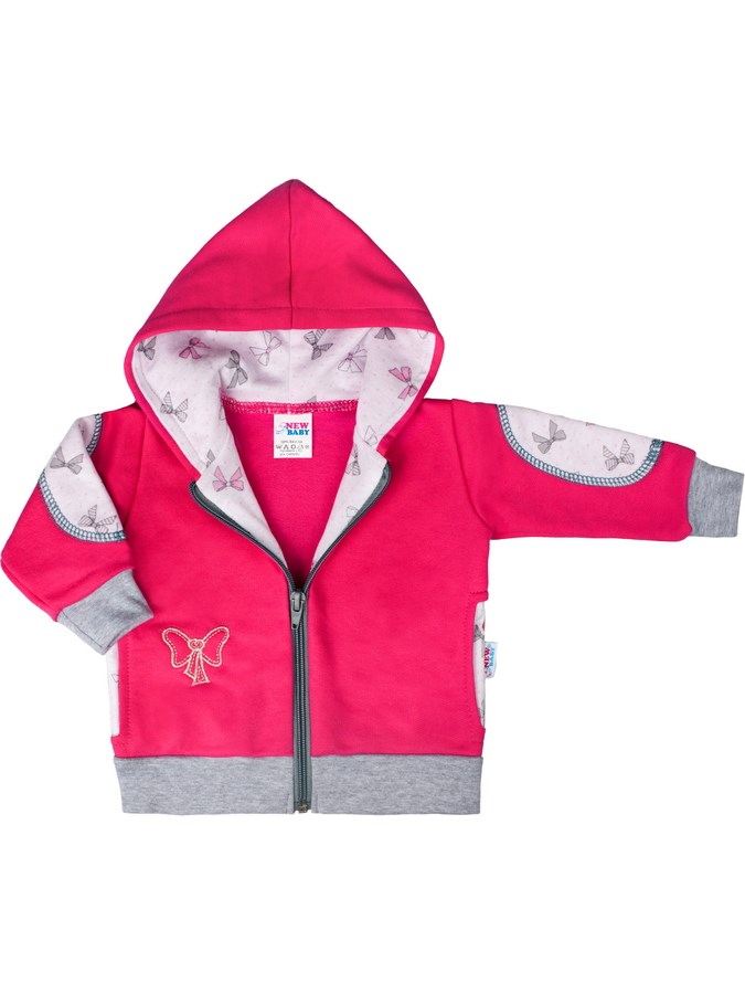 2-częściowy bawełniany dres New Baby dla niemowląt. W skład wchodzi bluza i spodenki. Dres jest ozdobiony ślicznym obrazkiem z kapturem. Zapinanie się na zamek błyskawiczny, spodenki mają elastyczny pas i 2 kieszenie. Skład: 100% bawełna. Rozmiar: bluza: obwód wokół klatki piersiowej 53 cm, długość rękawa 22 cm, całkowita długość 29 cm. Spodnie: obwód pasa 40 cm, długość od krocza 20 cm, długości 39 cm.