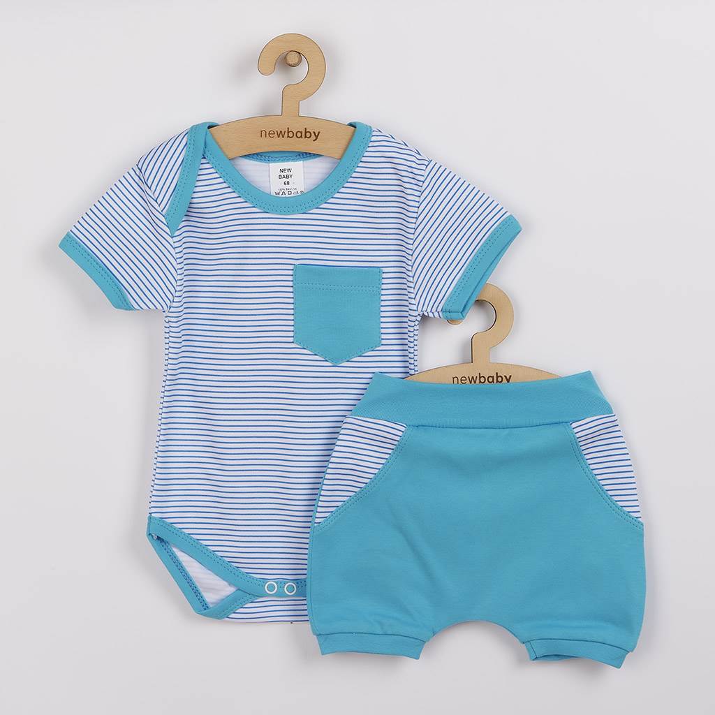 Piękny, uroczy i bardzo praktyczny 2-częściowy komplet dla chłopców New Baby Perfect Summer. Komplet składa się z krótkich spodenek i body. Body z krótkim rękawem ozdobione jest nowoczesnym wzorem i kieszonką. Wokół szyi, rękawów i nogawek posiada kolorowe wykończenie. Wygodne zapięcie na napy między nogami ułatwia ubieranie i przewijanie. Piękne spodenki mają szeroki, elastyczny ściągacz w pasie, który nie uciska brzucha dziecka. Na nogawkach jest wąskie, elastyczne wykończenie, a stylowy, a jednoczesnie praktyczny krój nadaje spodenkom styl. Komplet jest precyzyjnie i jakościowo uszyty, wykonany z bardzo wygodnego, bawełnianego materiału, w którym Twoje dziecko poczuje się bardzo komfortowo. Nasz letni komplet jest bardzo praktyczny i przydatny w upalne letnie dni. Skład: 100% bawełna.