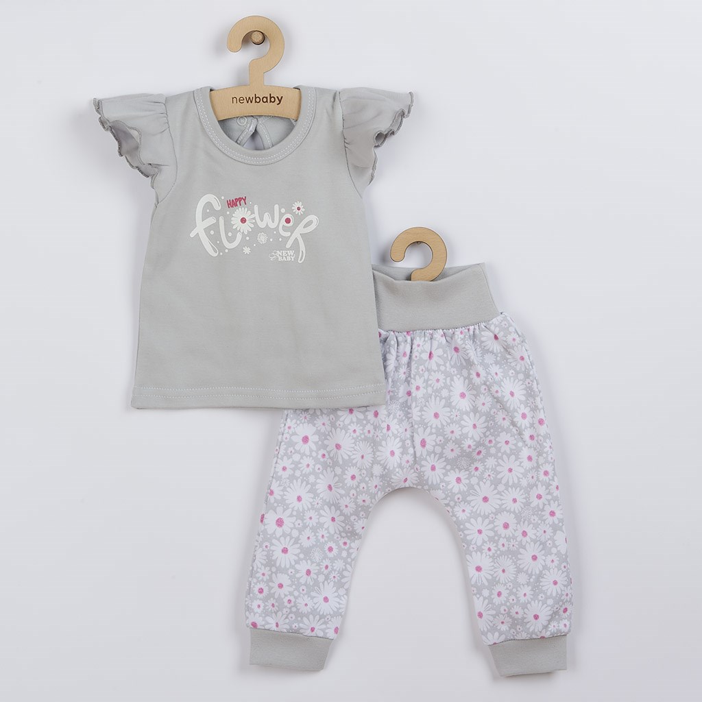 2-częściowy komplet bawełniany New Baby Happy Flower szary