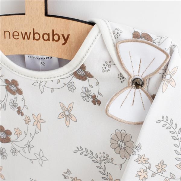 2-częściowy komplet New Baby Kate dla niemowląt. Komplet wykonany z bardzo przyjemnego i miękkiego materiału wysokiej jakości, który jest idealny dla niemowląt. W zestawie znajduje się koszulka i spodnie dresowe. Koszula jest ozdobiona w kwiaty. Ubieranie przez głowę bez zapięcia. Spodnie dresowe ozdobione szerszą lamówką posiadają zwężane nogawki. W tym precyzyjnie i solidnie wykonanym komplecie maluszek poczuje się bardzo komfortowo. Skład: 95% bawełna, elastan.