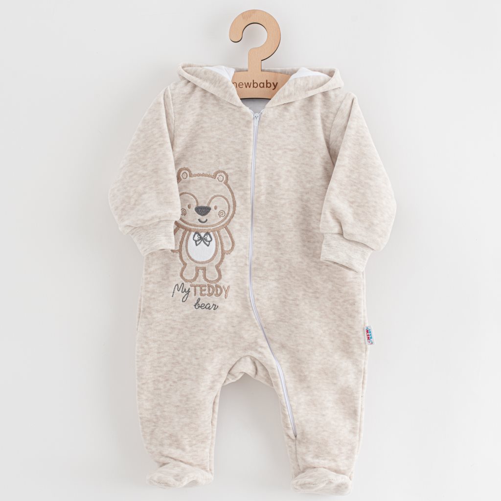 Aksamitny kombinezon dla niemowląt z kapturem New Baby Sweetheart beżowy