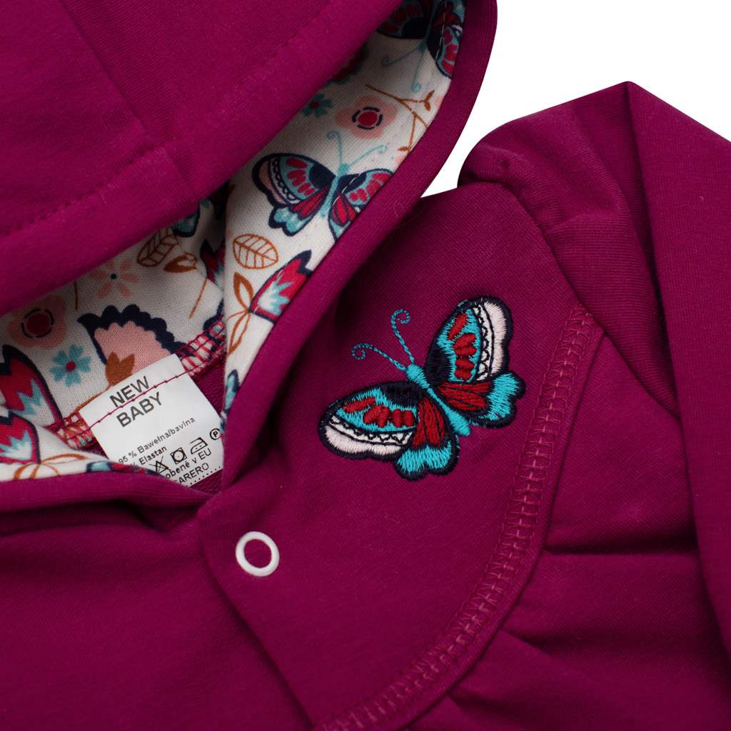 Piękna stylowa i praktyczna bluza dziewczęca z kapturem New Baby Little Girl. Bluza ma napy na całej długości, głębsze praktyczne kieszenie po bokach, obszyte materiałem w motylki i elastyczne obszycie na rękawach. Delikatnie marszczone rękawy, wyszywany obrazek motylka i kaptur podszyty bawełnianą podszewką w motylki zachwycą niejedną małą modnisię. Bluza wykonana jest z bardzo przyjemnego materiału, w którym Twoje dziecko poczuje się komfortowo. Zadowolenie klienta jest bardzo ważne dla New Baby i dlatego oferujemy tę bluzę z kolekcji New Baby Little Girl. Skład: 97% bawełna, 3% elastan.