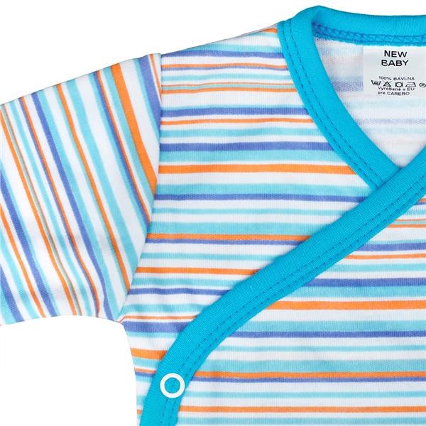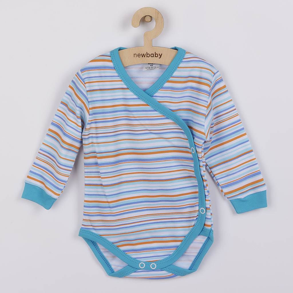 Bawełniane body z długim rękawem New Baby Puppik 2 dla małych dzieci. Body jest w paski i ma jednokolorowy lem. Zapina się na napy. Body jest uszyte w ładnych, żywych koloroch. Jest wykonane z miękkiej, wartościowej materii. Skład: 100% bawełna. Wymiary: obwód klatki piersiowej 48 cm, długość 38 cm, długość rękawa 21 cm.