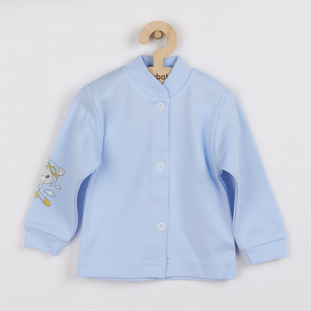 Modny, bawełniany kaftanik niemowlęcy New Baby Teddy pilot. Dziecięcy kaftanik jest jednokolorowy z obrazkiem misia. Praktyczne zapięcie na napy na całej długości ułatwia przewijanie i ubieranie. Kaftanik wykonany jest z niezwykle przyjemnego, miękkiego materiału bardzo wysokiej jakości, który jest przyjazny dla niemowląt. Podążamy za modą. Skład: 100% bawełny.