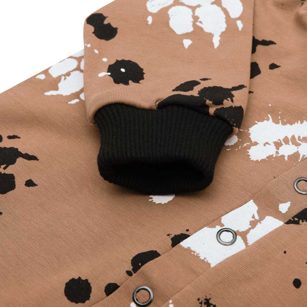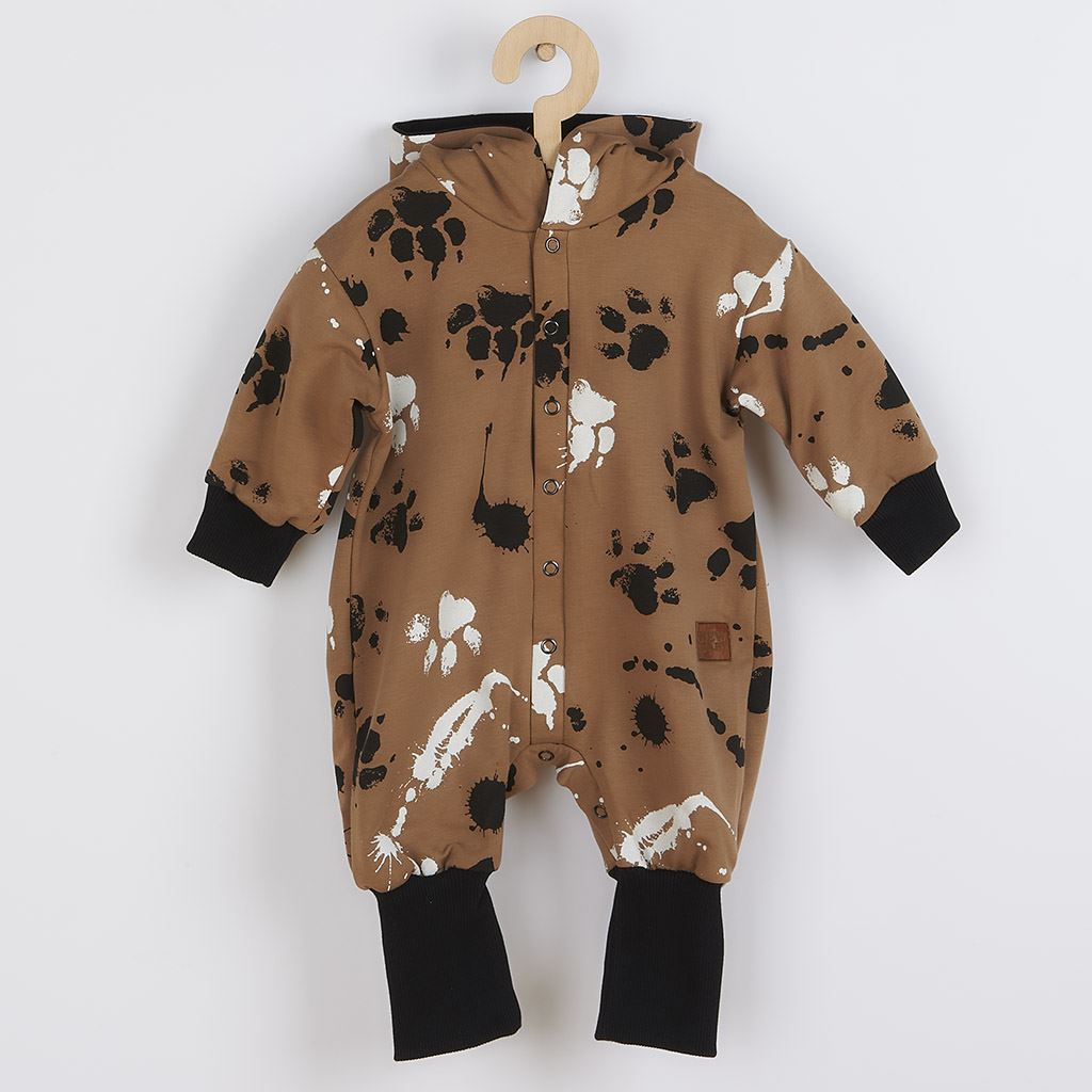 Pomysłowy bawełniany pajacyk niemowlęcy New Baby Paw. Pajacyk w całości zadrukowany zabawnym wzorem. Wykonany jest z wysokiej jakości materiału bawełnianego z dodatkiem elastanu oraz z bawełnianej podszewki. Materiał jest gładki i przyjemny w dotyku. Praktyczne zapinanie na napy na całej długości znacznie ułatwia ubieranie i przewijanie. Pajac posiada praktyczny kaptur z uszkami oraz szersze elastyczne obszycia na rękawach i nogawkach, a cała wewnętrzna strona podszyta jest ciepłą bawełnianą podszewką, która zwiększa komfort noszenia. W kombinezonie dziecko poczuje się niezwykle wygodnie i komfortowo. Skład: 95% bawełna, 5% elastan, podszewka - 95% bawełna, 5% elastan. Idealny na jesień i wiosnę.