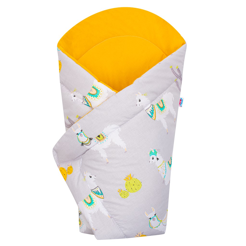 Dziecięcy becik New Baby. Zapina się na rzep. Rozmiar: 75x75 cm. Skład: 100% bawełna, wypełnienie: włókno antyalergiczne. Odcień różni się w zależności od dostawy.
