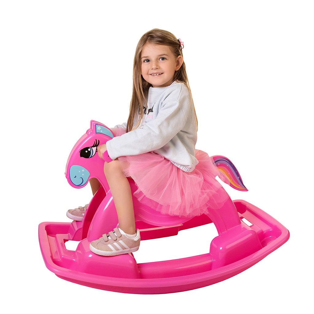 MA LEKKIE OTARCIA Konik na biegunach Bayo zaprojektowany został z myślą o dzieciach lubiących przygody. Wygodne, wyprofilowane siodło zapewni komfort i bezpieczeństwo podczas beztroskiego bujania maluszka. Konik posiada bieguny i rączki, które pomogą zachować równowagę podczas zabawy. Maluszek bawiąc się musi skoordynować ruchy z konikiem co stymuluje jego koordynację ruchową i rozwija wyobraźnię oraz poprawia poczucie równowagi. Przeznaczony do zabawy dla dzieci od 24 miesięcy. Maksymalne obciążenie jest 35 kg. Wykonany jest z wysokiej jakości i nieszkodliwego tworzywa sztucznego.