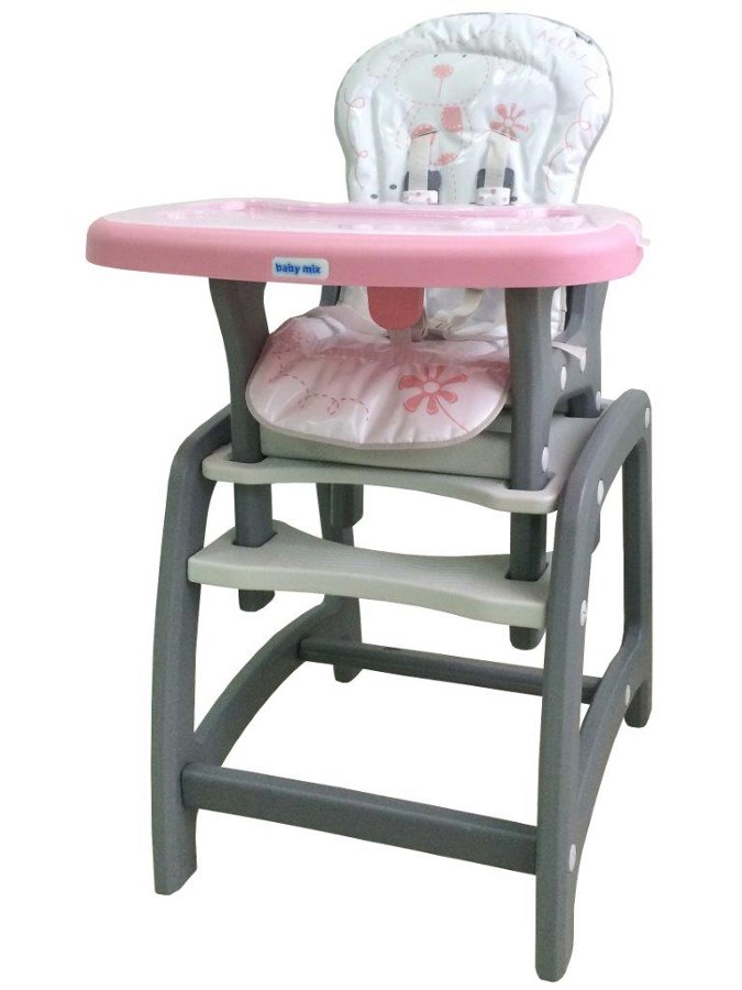 DRUGA JAKOŚĆ Krzesełko do karmienia Baby Mix 2w1 różowe