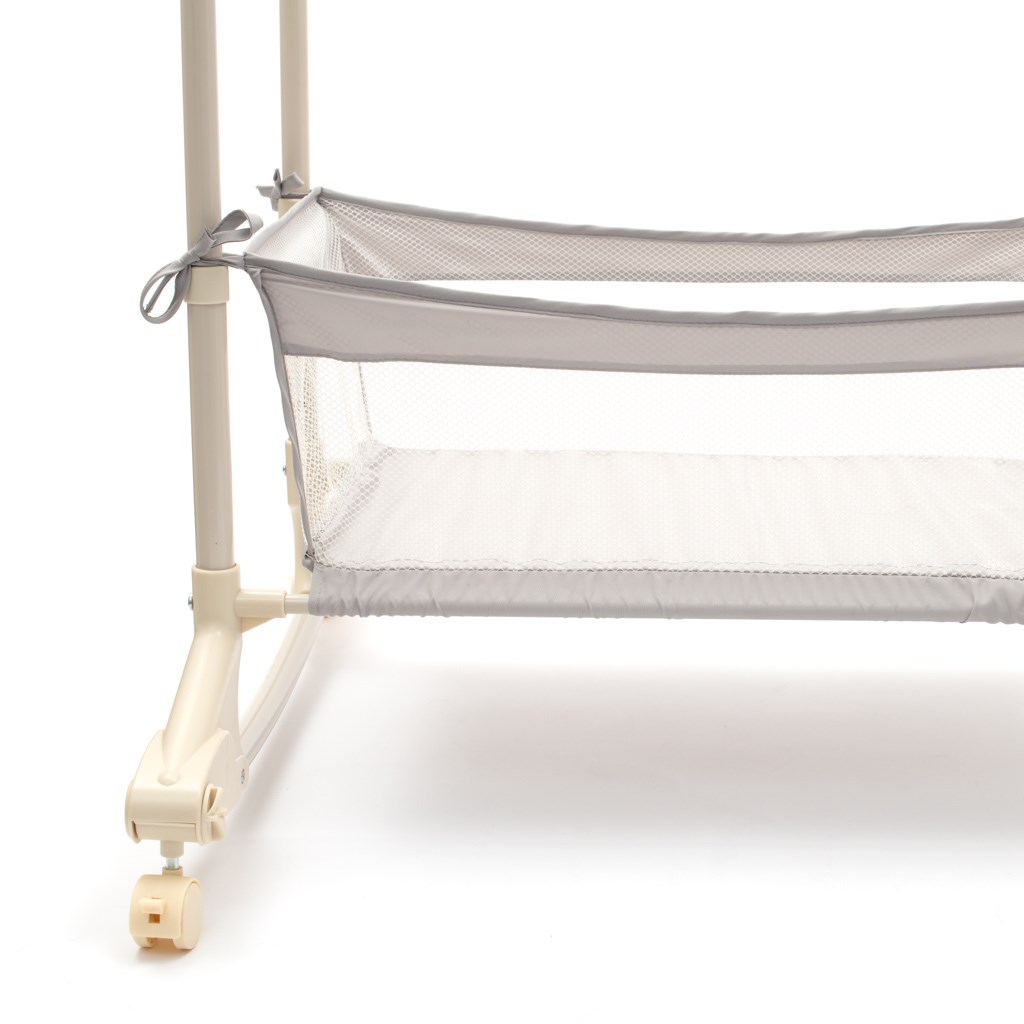 Kołyska niemowlęca New Baby. Kołyska jest idealną opcją zarówno dla dzieci, jak również rodziców, dla których funkcjonalność oraz bezpieczeństwo stanowią kluczowe cechy. Produkt może pełnić funkcję łóżeczka oraz kołyski. Mobilność kołyski daje ogromny komfort bo dziecko zawsze będzie blisko rodziców. Posiada dolny koszyk co pozwoli nam na trzymanie niezbędnych rzeczy zawsze blisko dziecka i na czas zareagowanie na jego potrzeby nie oddalając się od niego zanadto. Poszycie kołyski wykonane jest z przyjemnego w dotyku i przewiewnego materiału który można prać. Posiada karuzelę z kolorowymi zwierzątkami i melodiami. Kołyska ma opuszczaną ściankę boczną co w zestawie z lampką wbudowaną w karuzeli zapewni ogromny komfort przy codziennej i często nocnej opiece nad dzieckiem.