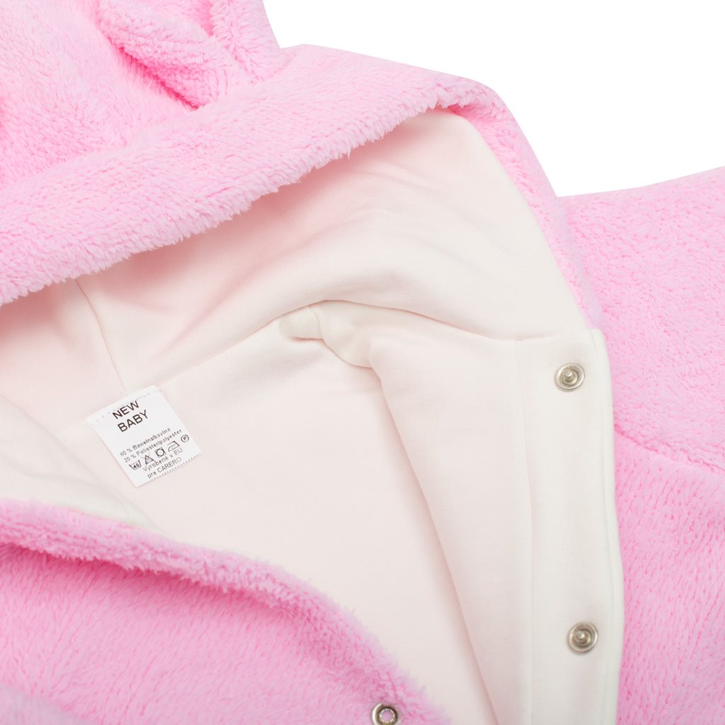 Uroczy kombinezon jesienno -zimowy z kapturem New Baby MiMi dla niemowląt. Piękny, ciepły, oryginalny i jednocześnie praktyczny. Wykonany jest z ocieplającego materiału o nazwie Wellsoft. Kombinezon posiada praktyczny kaptur z uszkami, szersze elastyczne obszycia na ramionach i nogawkach, a cała wewnętrzna strona jest podszyta grubszą podszewką. Zapięcie na całej długości na napy ułatwi ubieranie. W naszym kombinezonie dziecko poczuje się bardzo bezpiecznie i komfortowo. Materiał: 100% poliester-wellsoft, podszewka 95% bawełna, 5% elastan. Idealny na zimę i jesień.