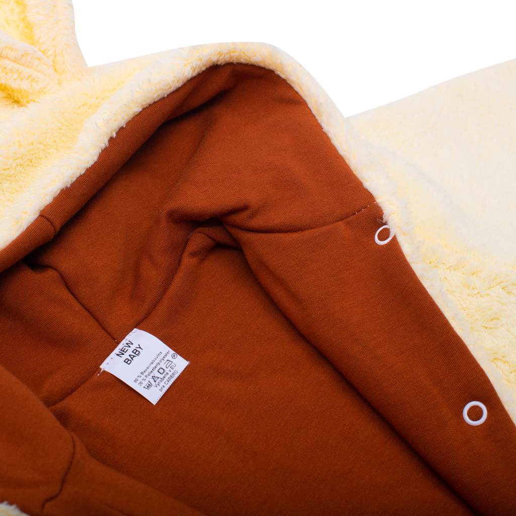 Uroczy kombinezon jesienno -zimowy z kapturem New Baby MiMi dla niemowląt. Piękny, ciepły, oryginalny i jednocześnie praktyczny. Wykonany jest z ocieplającego materiału o nazwie Wellsoft. Kombinezon posiada praktyczny kaptur z uszkami, szersze elastyczne obszycia na ramionach i nogawkach, a cała wewnętrzna strona jest podszyta grubszą podszewką. Zapięcie na całej długości na napy ułatwi ubieranie. W naszym kombinezonie dziecko poczuje się bardzo bezpiecznie i komfortowo. Materiał: 100% poliester-wellsoft, podszewka 95% bawełna, 5% elastan. Idealny na zimę i jesień.