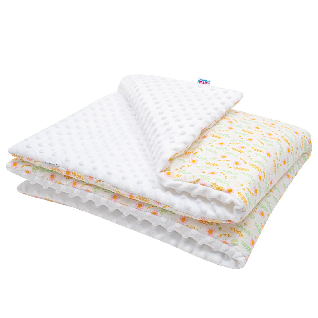 Kocyk dziecięcy New Baby Minky wykonany jest z dwóch rodzajów tkaniny, przyjemnej w dotyku Minky i 100% bawełny. Wykonany jest z wysokiej jakości materiału, który nie farbuje i nie powoduje reakcji alergicznych. Koc może być używany zarówno w domu, jak i na zewnątrz, w wózku, łóżeczku lub foteliku samochodowym. Koc jest bardzo przyjemny i miękki w dotyku.