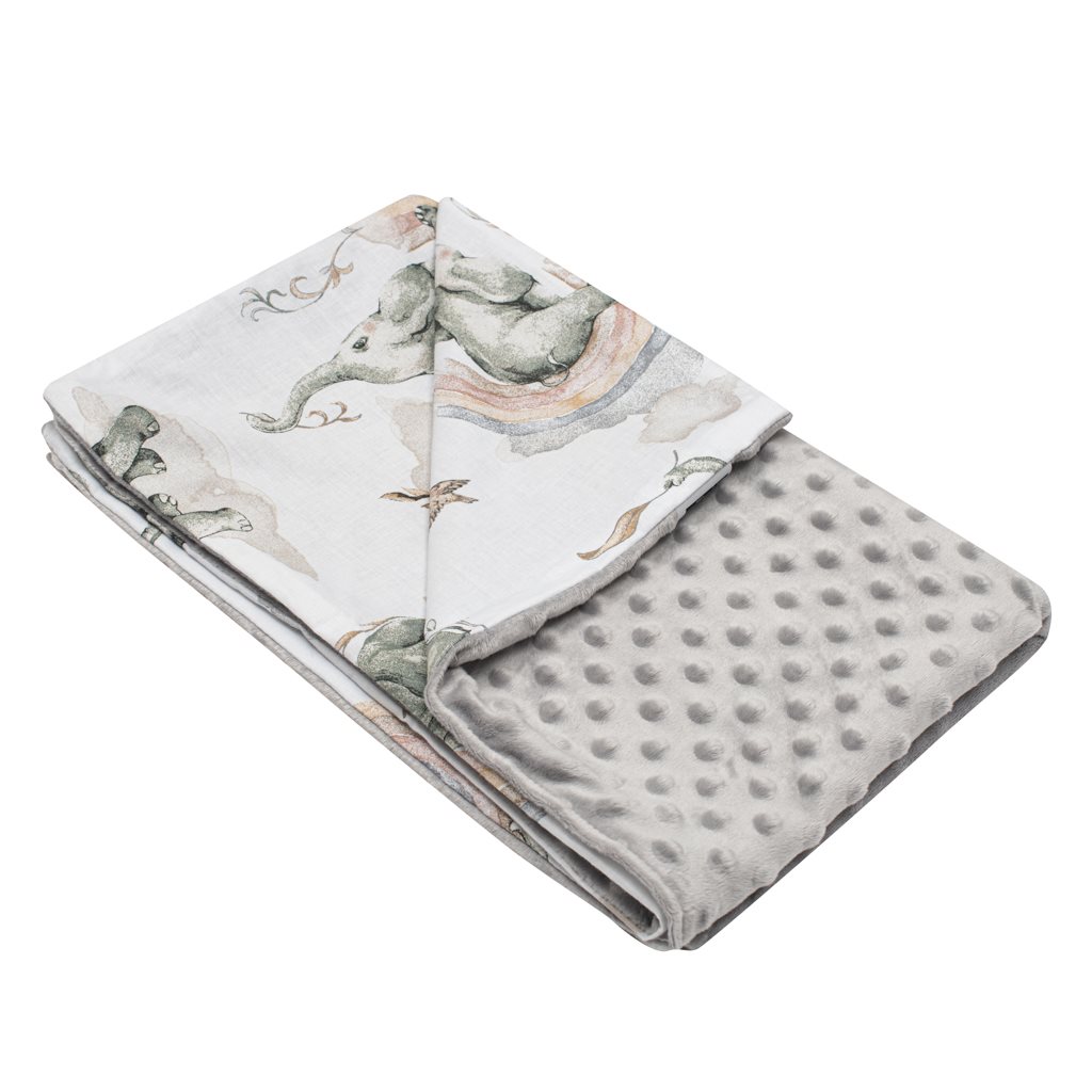 Dziecięcy kocyk z Minki New Baby Słoniki biało-szary 80x102 cms