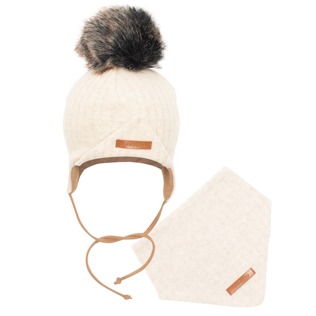 Jesienna czapeczka dla niemowląt z chustką pod szyję New Baby Special One beżowa