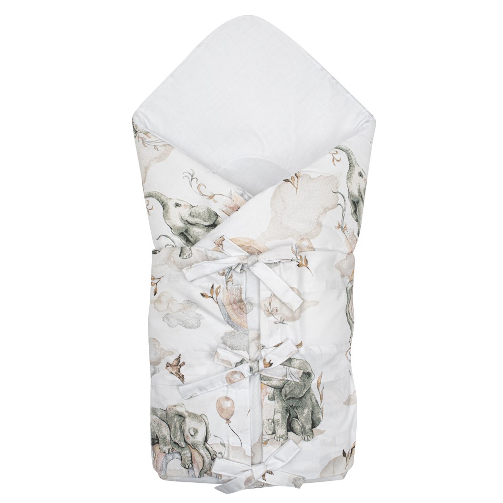 Klasyczny rożek wiązany New Baby Słoniki biało-szary