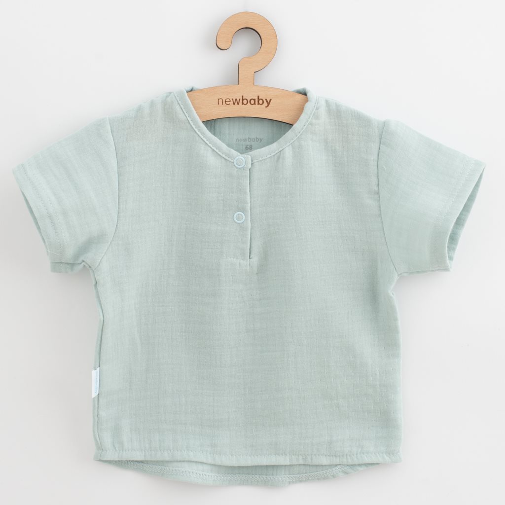 Praktyczny letni 2-częściowy muślinowy komplet niemowlęcy New Baby Soft Dress dla chłopców. Letni zestaw składa się z koszulki i szortów. Koszulka ma krótkie rękawy i doskonały krój. Zapinana na napy pod szyją. Spodenki mają szerszą gumkę w pasie, która nie uciska brzuszka dziecka. Zestaw jest lekki i bardzo wygodny w noszeniu. Skład: 100% bawełna. Muślin jest jedną z najczystszych, najprostszych i najdelikatniejszych tkanin na świecie. Drobno tkany, oddychający materiał jest tak doskonały, że pokochały je dzieci na całym świecie. Luźny splot pozwala muślinowi „oddychać” i zapewnia wystarczającą cyrkulację powietrza, zmniejszając ryzyko przegrzania. Ta jego cecha pomaga zapewnić dziecku wygodę i bezpieczeństwo, a rodzicom spokój. Muślin jest bardzo trwały, dzięki czemu bez problemu poradzi sobie z wielokrotnym praniem, a z czasem staje się cieńszy i bardziej miękki.