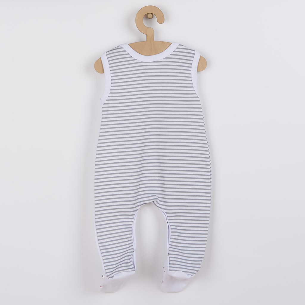 Uroczy, bawełniany komplet niemowlęcy New Baby Panda. Składa się ze śpiochów i kaftanika. Spiochy są w całości nadrukowane nowoczesnymi paskami. Są ozdobione obrazkiem pandy. Praktyczne zapięcie na napy na ramieniu i między nogami ułatwia ubieranie i przewijanie. Rękawy i kołnierz są w całości nadrukowane nowoczesnymi paskami, a przód zdobi obrazek bajkowej pandy i napis COOL. Praktyczne zapięcie na napy wzdłuż całej długości. Kładziemy nacisk na jakość, dzięki przyjemnemu i miękkiemu materiałowi wysokiej jakości Twoje dziecko poczuje się bardzo komfortowo. Pajac o nowoczesnym wyglądzie jest odpowiedni zarówno dla dziewcząt jak i chłopców. Skład: 100% bawełny.
