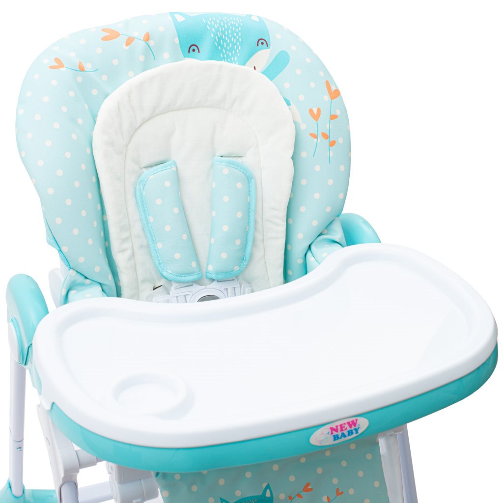 Krzesełko do karmienia NEW BABY Minty Fox - ekoskóra i wkładka dla mniejszych dzieci