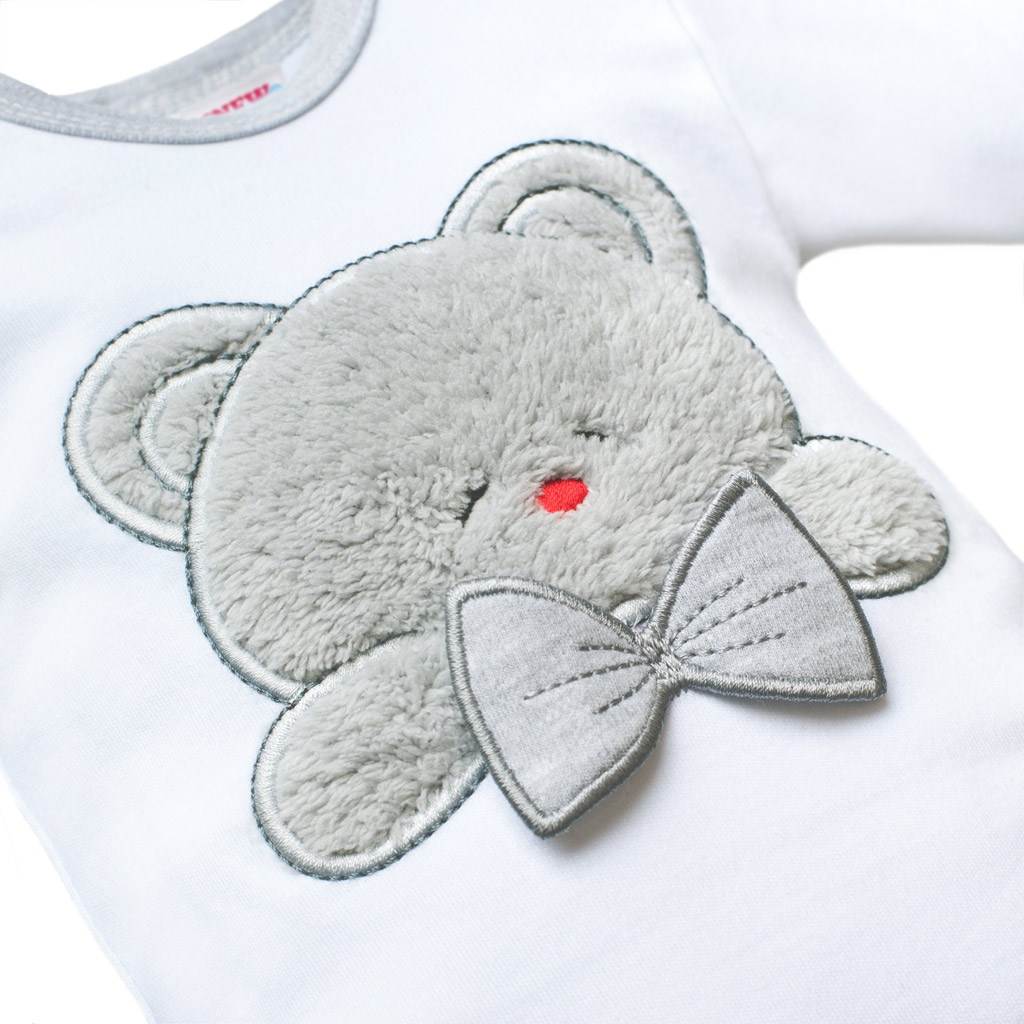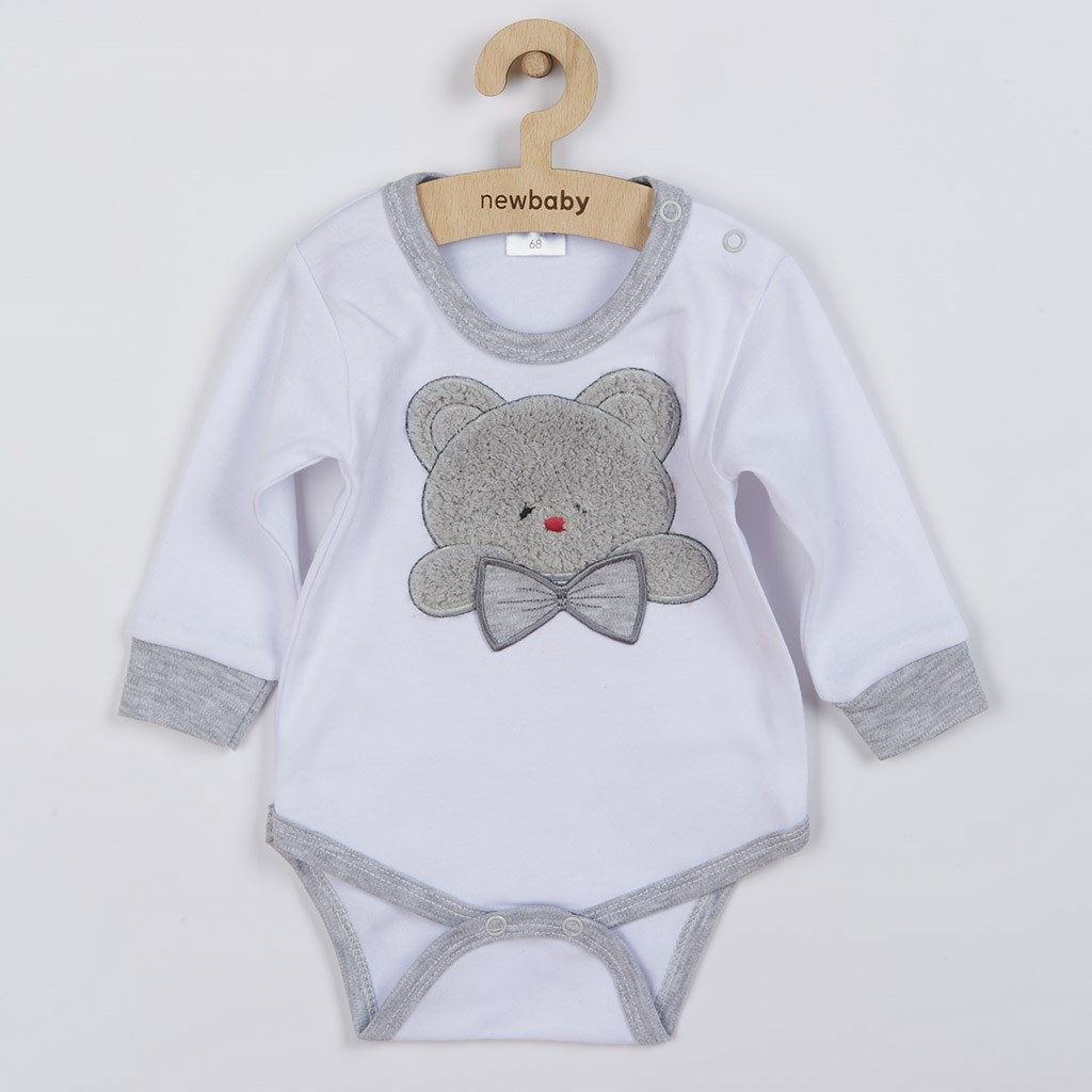 Oryginalne bawełniane niemowlęce body z długim rękawem New Baby Honey Bear. Body zdobi 3D obrazek misia, lamówka. Body wykonane jest z wartościowego, miękkiego i na dotek przyjemnego materiału. Zapina się na napy. Skład: 100% bawełna.
