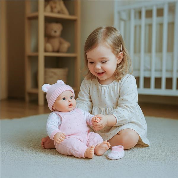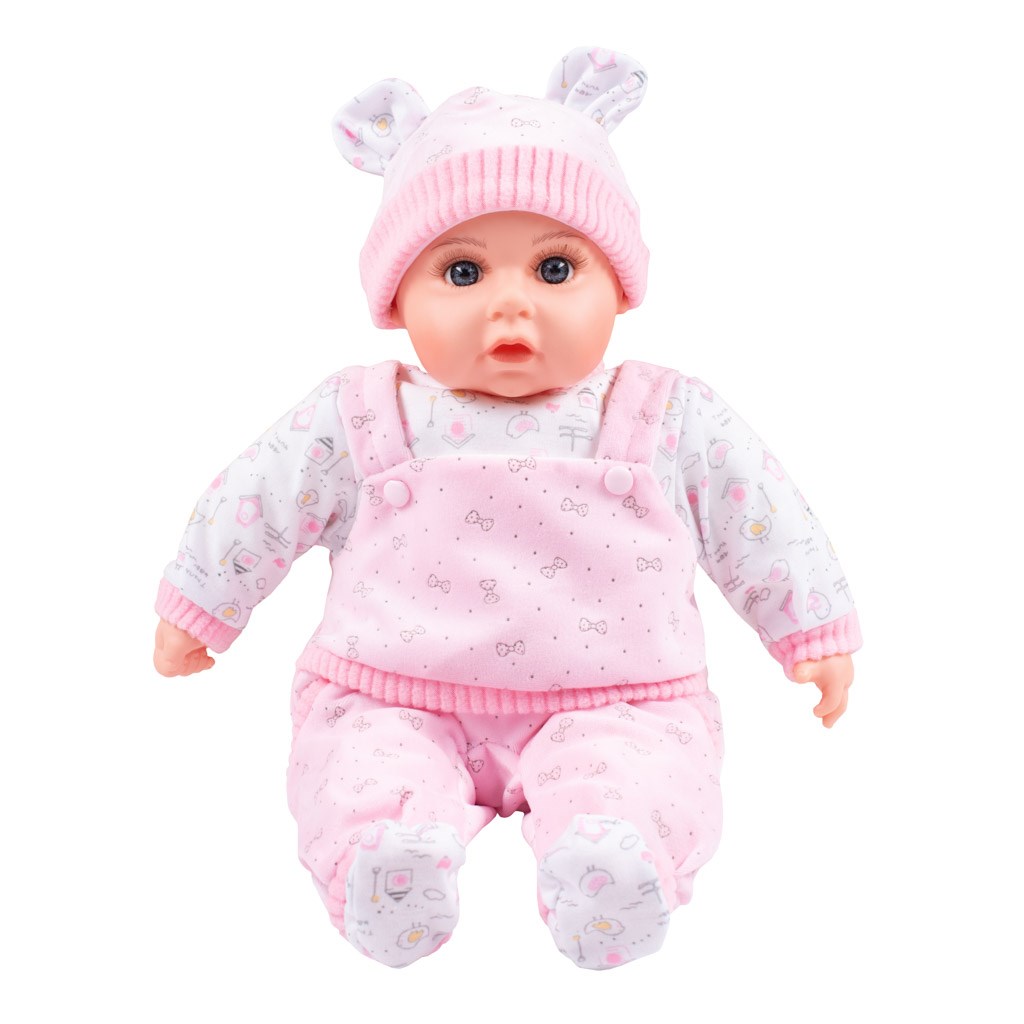 Piękna dziecięca lalka PlayTo. Ciało lalki wykonane jest z miękkiego materiału a ręce, nogi i głowa jest z gumy. Lalka ma ładne ubranie, które można złożyć i wyprać. Długość lalki 46 cm. Lalka ma czeski modul i mówi czeskie zdania i słowa jak: