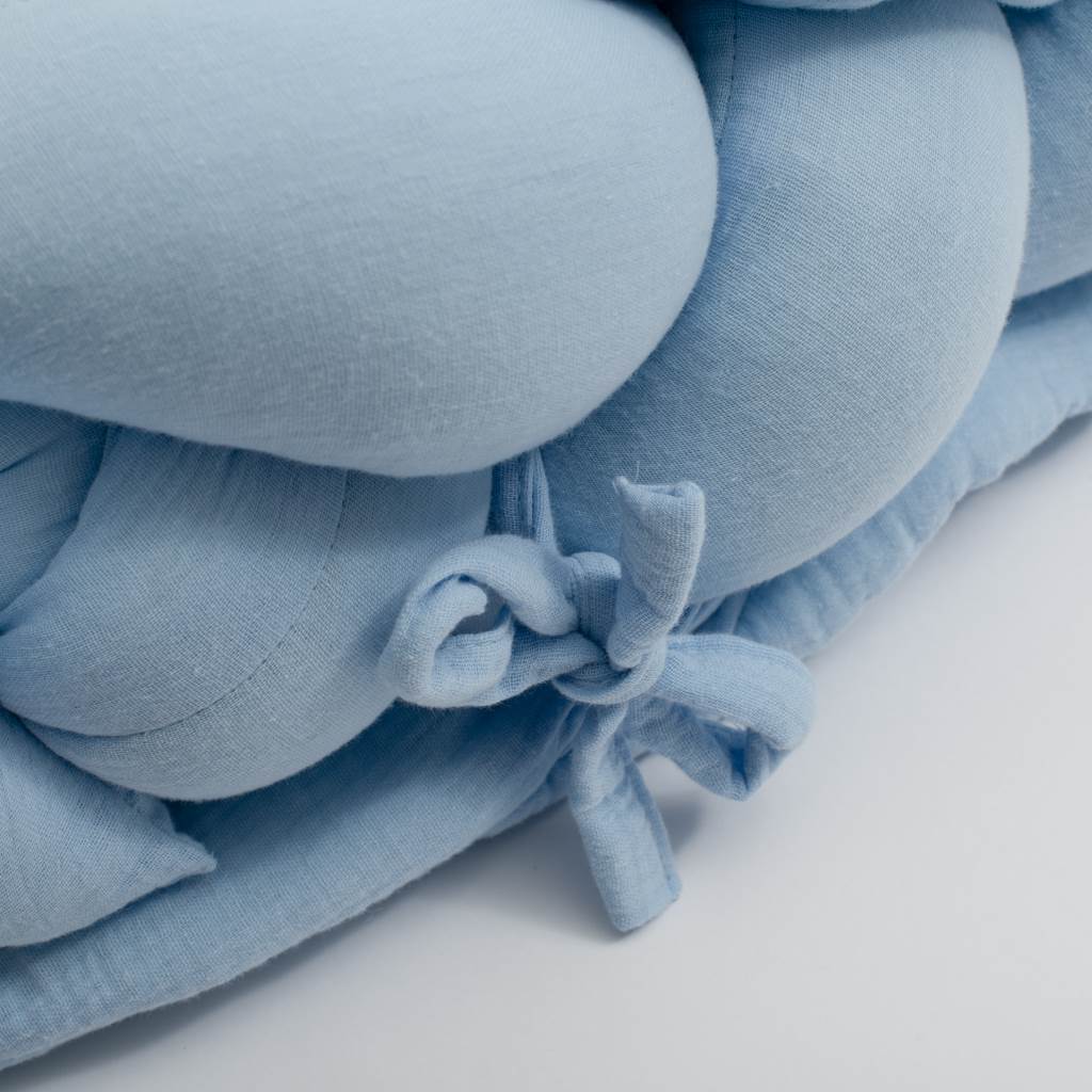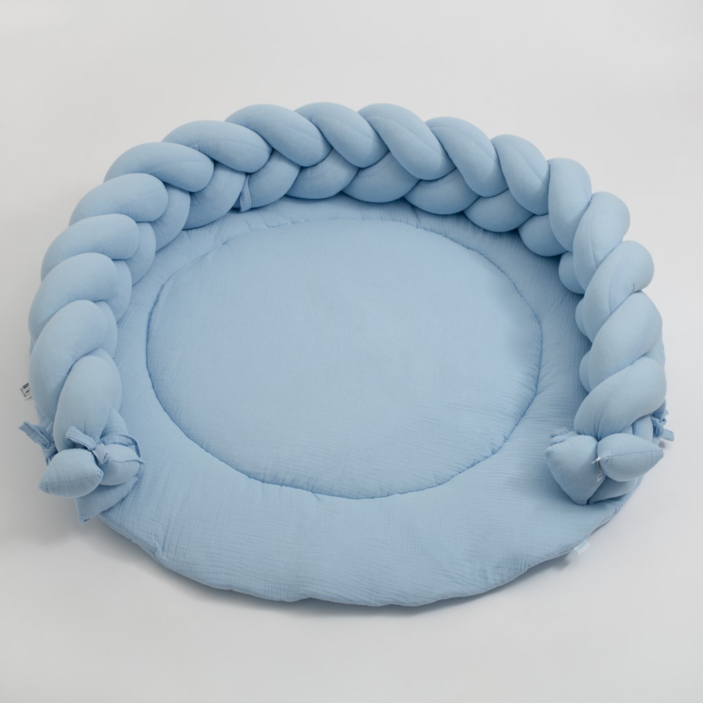 Muślinowy kocyk do zabawy dla niemowląt New Baby to doskonały produkt, który będzie służył Twojemu dziecku od pierwszych dni życia. W pierwszym okresie będzie stanowił wspaniałą matę, którą możesz rozłożyć na łóżku lub w łóżeczku, później możesz go podłożyć pod niego, gdy będzie się wspinał. Później, gdy dziecko zacznie siadać, w połączeniu z muślinowym warkoczem New Baby będzie przyjemnym miejscem do zabawy. Warkocz wystarczy przywiązać do maty za pomocą sznurków dołączonych do warkocza.