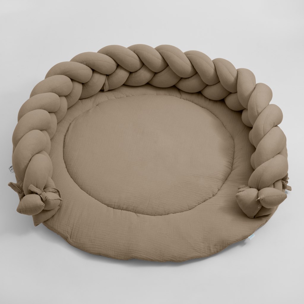 Muślinowy kocyk do zabawy dla niemowląt New Baby to doskonały produkt, który będzie służył Twojemu dziecku od pierwszych dni życia. W pierwszym okresie będzie stanowił wspaniałą matę, którą możesz rozłożyć na łóżku lub w łóżeczku, później możesz go podłożyć pod niego, gdy będzie się wspinał. Później, gdy dziecko zacznie siadać, w połączeniu z muślinowym warkoczem New Baby będzie przyjemnym miejscem do zabawy. Warkocz wystarczy przywiązać do maty za pomocą sznurków dołączonych do warkocza.
