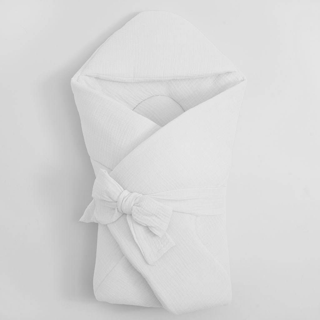 Muślinowy rożek z kapturkiem New Baby biały