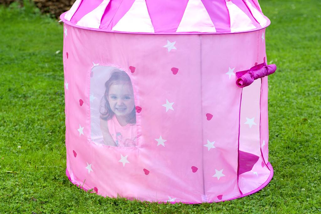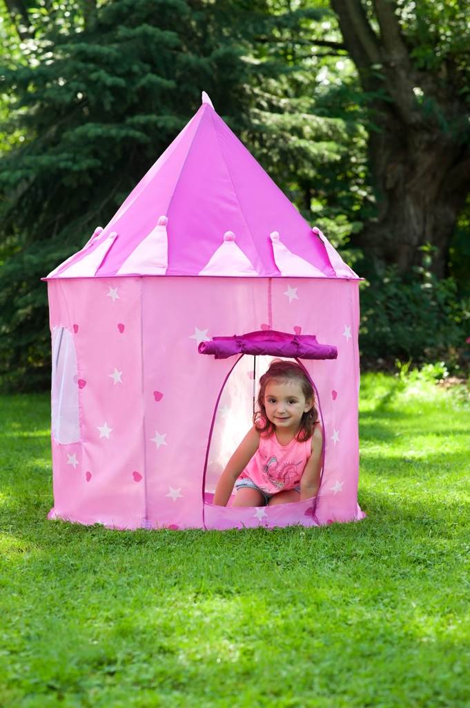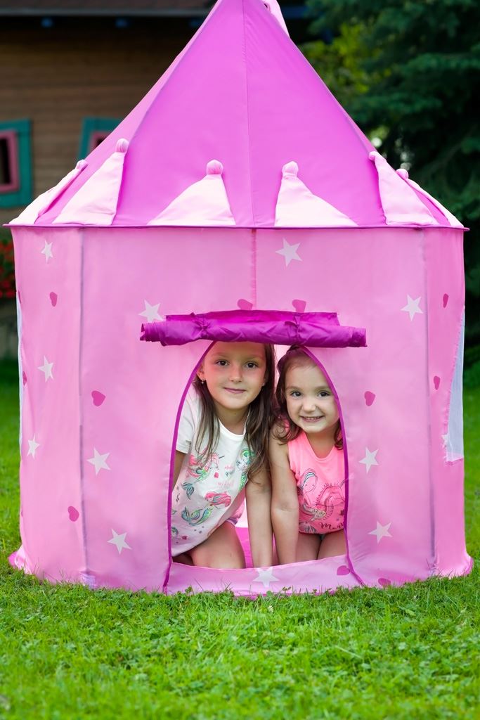 Namiot dla dzieci Baby Mix Zamek. Każde dziecko lubi budować namioty za pomocą krzeseł, stołów i koców. Dzięki naszemu namiotu będzie miała wreszcie twója księżniczka swe własne królestwo, bezpieczne schronienie, w którym może ukryć swe skarby, zabawki, lub zaprosić swoją najlepszą koleżankę. Nie można zapomnieć o tym, że dzieci bardzo lubią zabawy, w których nikt im nie przeszkadza a namiot to wspaniała kryjówka. Zamek sprawdzi się także w ogrodzie czy na plaży kiedy chroni dziecko przed słońcem i wiatrem. Użytkownicy cenią sobie również szybkość składania i rozkładania tej zabawki. Wykonany jest z wysokiej jakości i solidnego materiału. Przeznaczony dla dzieci od 3 lat