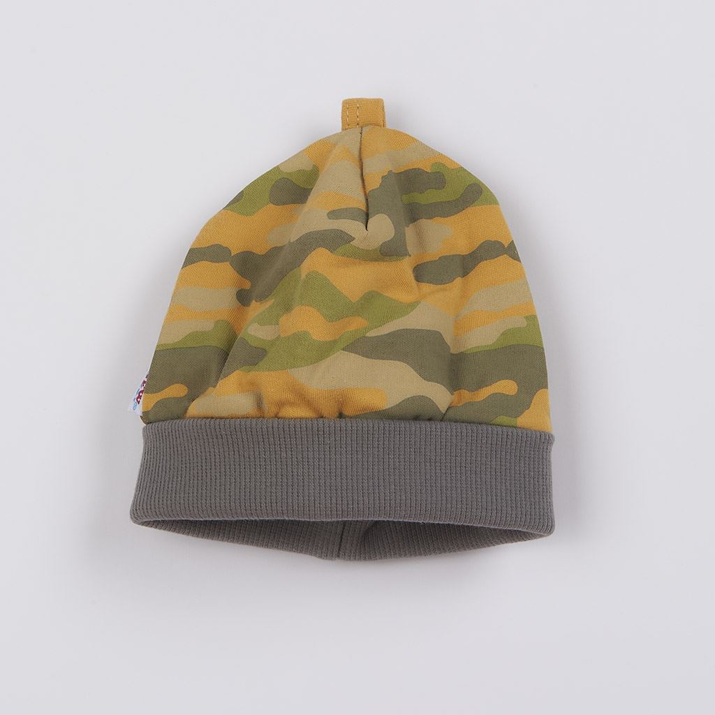 Stylowa bawełniana czapeczka dla niemowląt New Baby With Love. Czapka idealna już od chwili narodzin. Jest w całości w modny wzór moro i posiada szersze wykończenie, który nie uciska główki dziecka. Stawiamy na jakość, dlatego dzięki wykorzystaniu przyjemnego, miękkiego i wysokogatunkowego materiału Twoje dziecko poczuje się bardzo komfortowo. Skład: 100% bawełna.