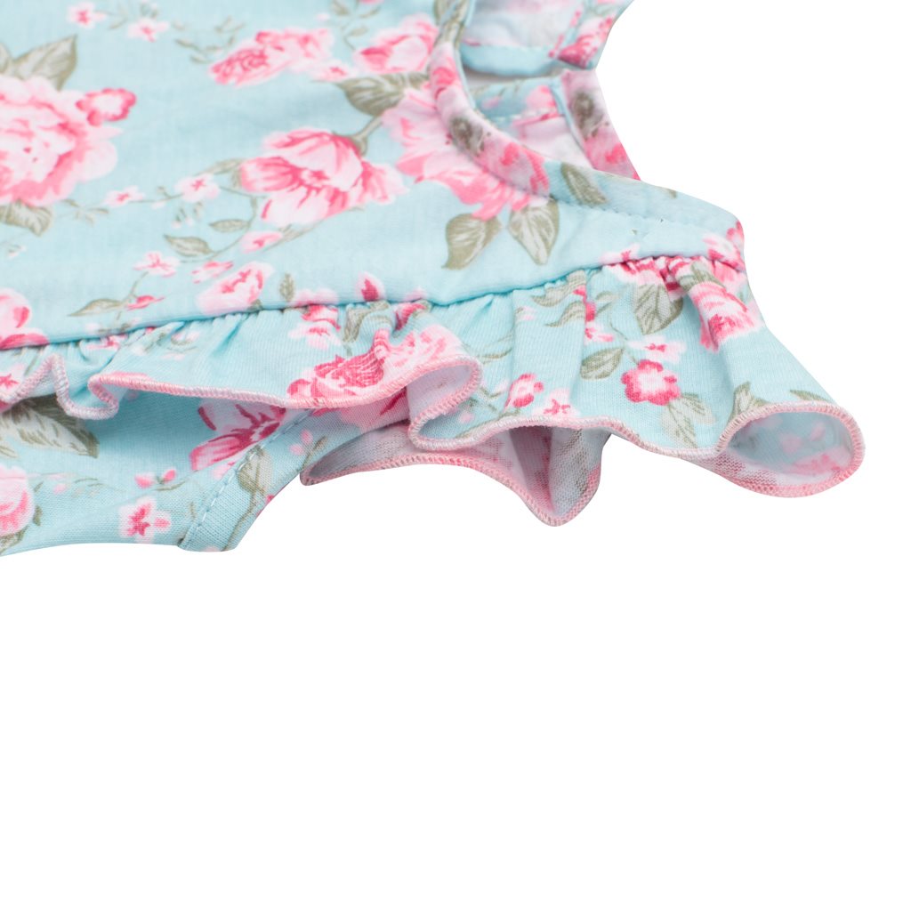 Pomysłowa, urocza letnia bawełniana sukienka z falbaniastymi rękawami New Baby Roses. Sukienka ozdobiona jest wzorem z pięknymi różami i ciekawie marszczonymi rękawami, które dodają sukience niezwykłego uroku. Praktyczne zapięcie pod szyją na plecach ułatwia ubieranie maluszka. Ładna letnia sukienka rozjaśni buzię każdej dziewczynki, a ciebie oczaruje pięknym różanym motywem. Letnia sukienka to nieodłączny element dziewczęcej garderoby w gorące, letnie dni. Skład: 100% bawełna.
