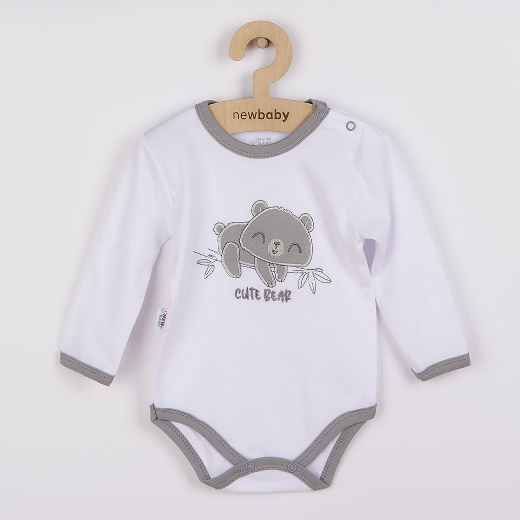 Body z długim rękawem New Baby Cute Bear. Body zdobi haftowany obrazek przedstawiający misia, podszytym tkaniną zapobiegającą zarysowaniom. Zapinanie na napę na ramieniu i między nogami, ułatwia ubieranie i przewijanie. Body posiada lamówki wokół szyi oraz na zakończeniu rękawów i nogawek. Dzięki zastosowaniu przyjemnego i wysokogatunkowego materiału Twoje dziecko poczuje się bardzo komfortowo w naszej kolekcji. Kolekcja zachwyci Cię uroczym i twarzowym motywem. Skład: 100% bawełna.