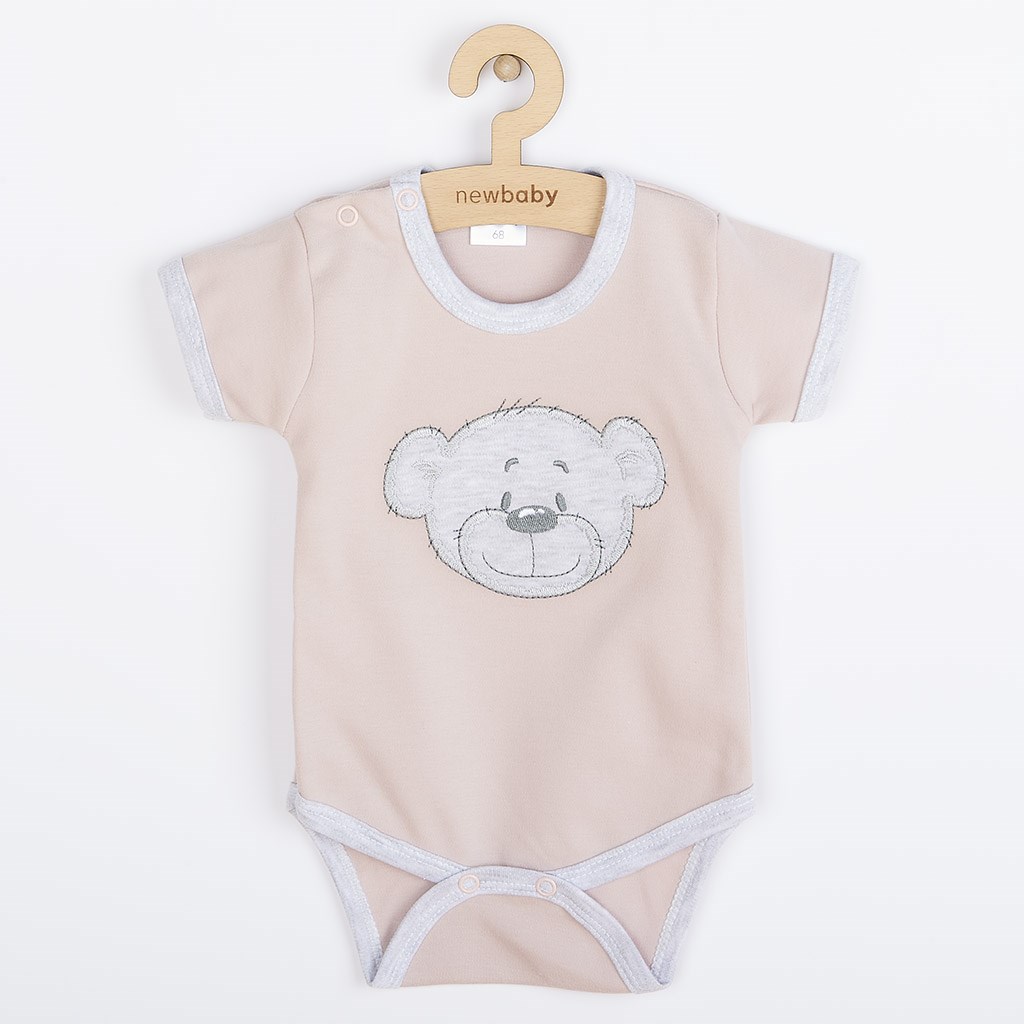 Pomysłowe bawełniane body niemowlęce z krótkim rękawem New Baby BrumBrum. Body zdobi urocza aplikacja z misiem. Aplikacja jest podklejona tkaniną zapobiegającą zarysowaniom. Zapięcie na napy na ramieniu oraz między nogami ułatwia ubieranie i przewijanie. Skład: 100% bawełna.