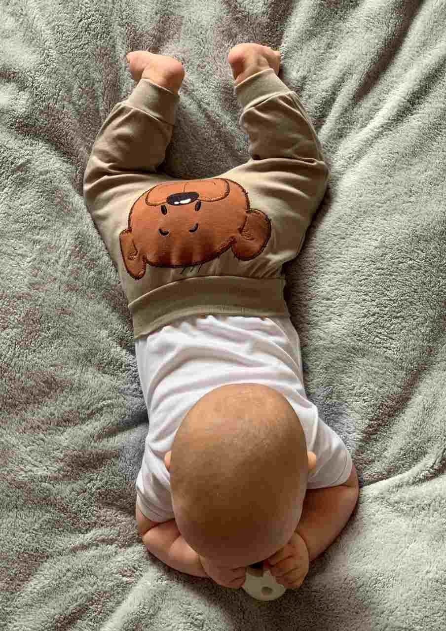 Pomysłowe bawełniane półśpiochy New Baby BrumBrum dla niemowląt. Półśpiochy na dupie są zdobione urocza aplikacja z misiem. Aplikacja jest podklejona tkaniną zapobiegającą zarysowaniom i posiadają szeroki, elastyczny ściągacz w pasie, który nie uciska brzuszka dziecka. Dzięki wykorzystaniu przyjemnego i miękkiego materiału wysokiej jakości maluszek poczuje się bezpiecznie i komfortowo. Skład: 100% bawełna.