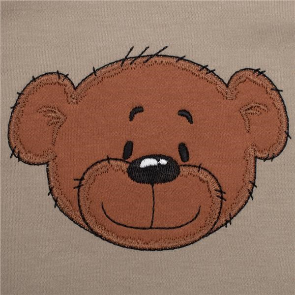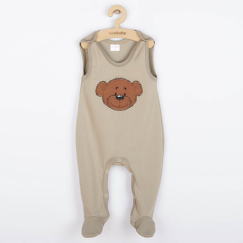 Pomysłowe i praktyczne bawełniane śpiochy New Baby BrumBrum dla niemowląt. Śpiochy zdobi urocza aplikacja z misiem. Aplikacja jest podklejona tkaniną zapobiegającą zarysowaniom.