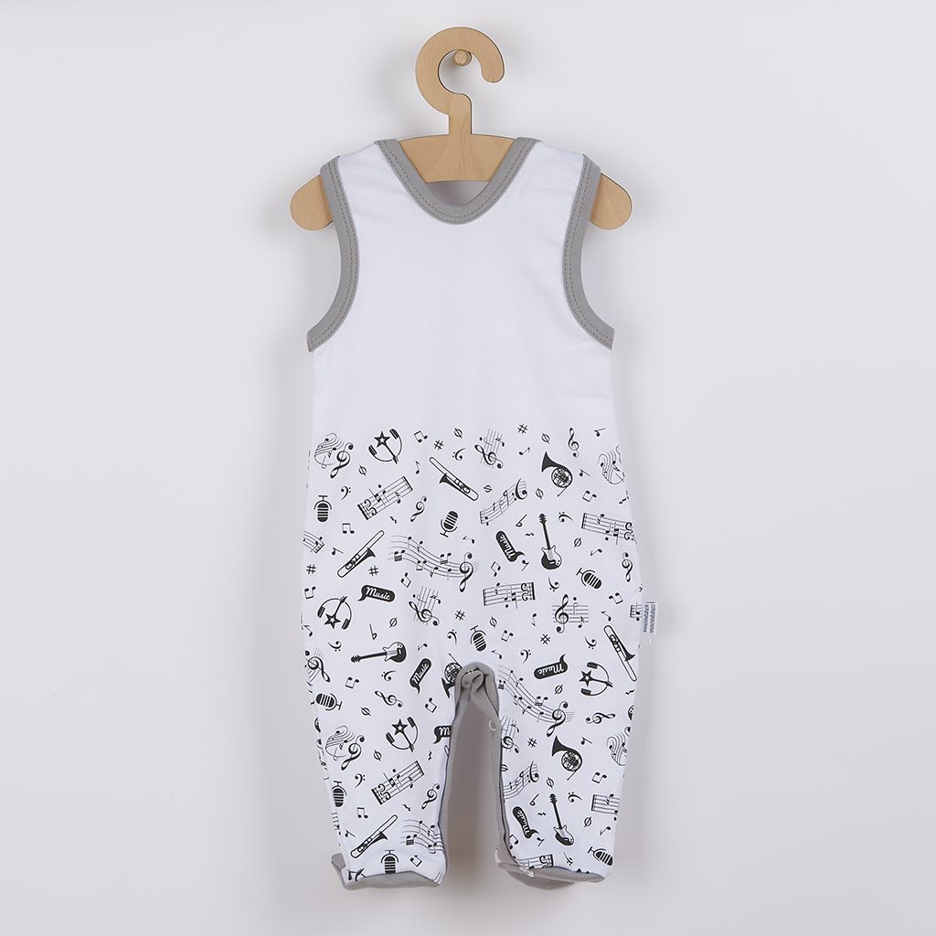 Oryginalne, elegancyjne bawełniane śpiochy New Baby Music dla niemowląt. Śpiochy są jednokolorowe z obrazkiem nut z napisem Music. Część dolna z nadrukiem nut i instrumentów muzycznych. Zapinają się na napy na ramieniu i między nóżkami. Nowoczesny design przystanie wszystkim małym dzieciom. Bardzo przyjemny, miękki i wysokiej jakości materiał. Skład: 100% bawełna. Wymiary: obwód klatki piersiowej 24 cm, długośc od krocza 19 cm, długośc od ramienia 59 cm.