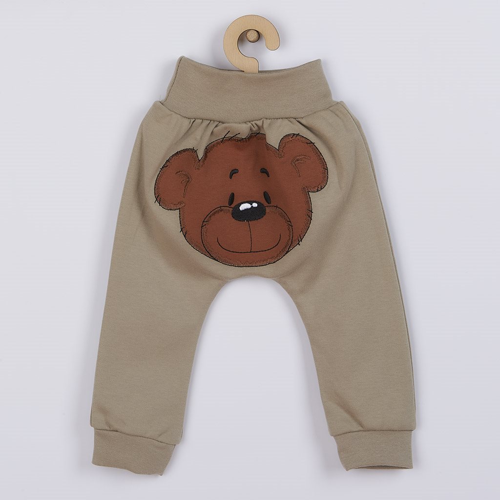Pomysłowe bawełniane spodnie New Baby BrumBrum dla niemowląt. Spodnie na dupie są zdobione urocza aplikacja z misiem. Aplikacja jest podklejona tkaniną zapobiegającą zarysowaniom i posiadają szeroki, elastyczny ściągacz w pasie, który nie uciska brzuszka dziecka. Dzięki wykorzystaniu przyjemnego i miękkiego materiału wysokiej jakości maluszek poczuje się bezpiecznie i komfortowo. Skład: 100% bawełna.