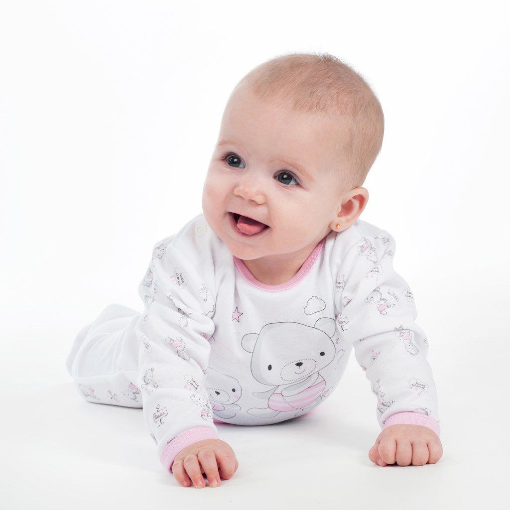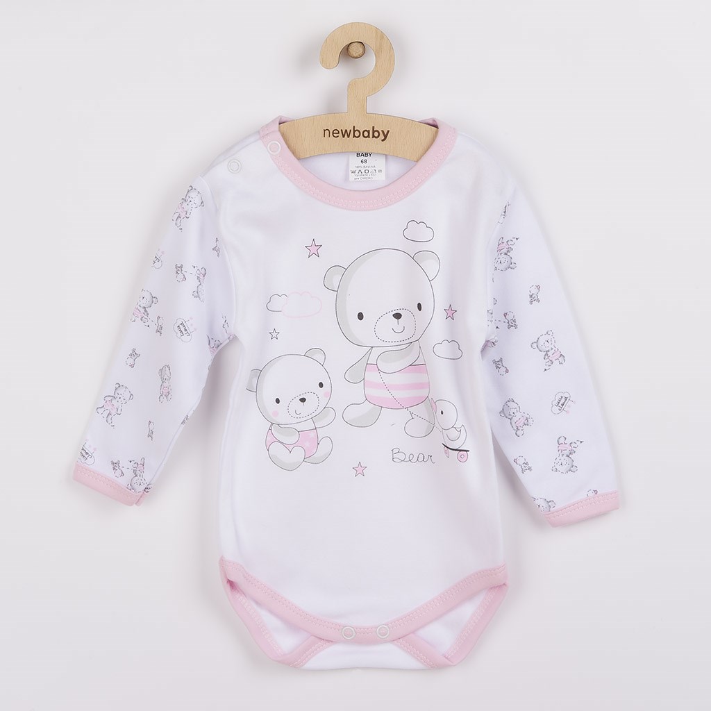 Urocze body niemowlęce z długim rękawem New Baby Bears. Rękawy body są w misie, a przód ozdobiony jest obrazkiem misia i napisem Bears. Zapinane na napy na ramieniu i między nóżkami, co ułatwa ubieranie i przewijanie. Dzięki wykorzystaniu przyjemnego i miękkiego materiału wysokiej jakości Twoje dziecko poczuje się w ubrankach z tej kolekcji jak w bajce, która nigdy się nie kończy. Kolekcja oczaruje Cię uroczym i niezwykle twarzowym motywem. Marka New Baby dba o zadowolenie klientów i dlatego oferuje nową kolekcję wysokiej jakości New Baby Bears. Skład: 100% bawełny.