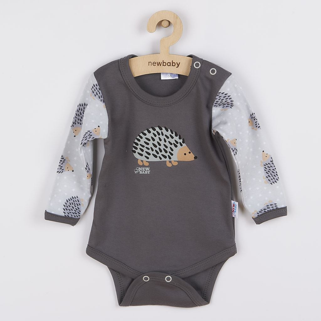 Pomysłowe i ciekawe body niemowlęce z długim rękawem New Baby Jeżyk. Body dziecięce posiada rękawy z nadrukiem w małe jeżyki. Przód ozdobiony dużym wizerunkiem uroczego jeża. Praktyczne zapięcie na napy na ramieniu oraz między nogami znacznie ułatwia ubieranie i przewijanie. Stawiamy na jakość, dlatego dzięki przyjemnemu, miękkiemu i wysokogatunkowemu materiałowi Twoje dziecko poczuje się bardzo komfortowo. Pomysłowa i fajna, właśnie taka jest nasza kolekcja New Baby Jeżyk. Skład: 100% bawełna.