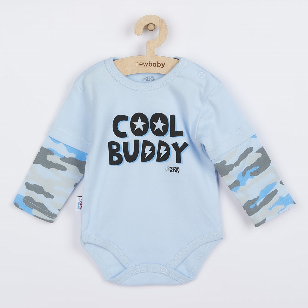 Stylowe body niemowlęce z długim rękawem New Baby With Love. Body dziecięce ozdobione jest napisem COOL BUDDY. Rękawy moro nadają body stylu. Praktyczne zapięcie na napy na ramieniu oraz między nogami znacznie ułatwia ubieranie i przewijanie. Body to ważny element niemowlęcej garderoby. W trakcie każdego ruchu plecy dziecka są stale zakryte. Stawiamy na jakość, dlatego dzięki wykorzystaniu przyjemnego, miękkiego i wysokogatunkowego materiału Twoje dziecko poczuje się niezwykle komfortowo. Skład: 100% bawełna.