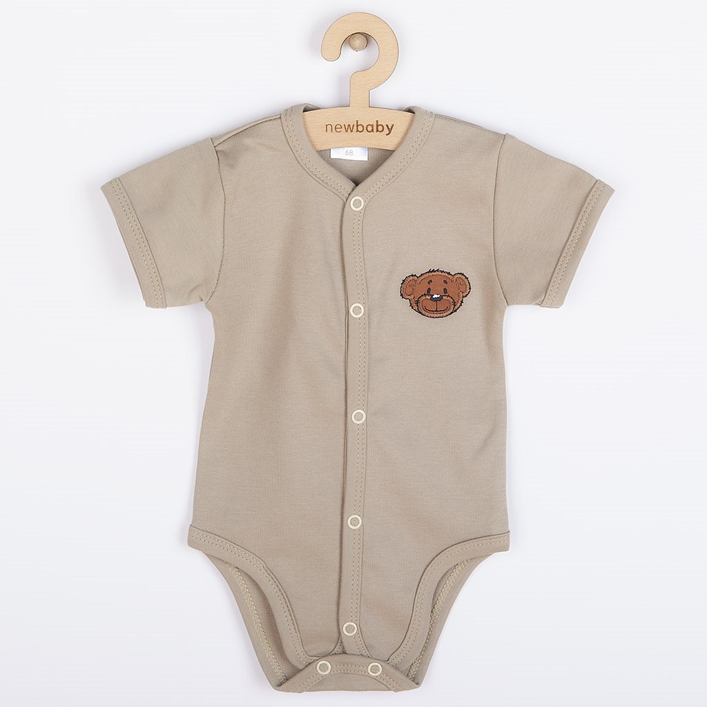 Pomysłowe bawełniane body niemowlęce z krótkim rękawem New Baby BrumBrum. Body zdobi urocza aplikacja z misiem. Aplikacja jest podklejona tkaniną zapobiegającą zarysowaniom. Praktyczne zapięcie na napy po całej długości oraz między nogami znacznie ułatwia ubieranie i przewijanie. Skład: 100% bawełna.