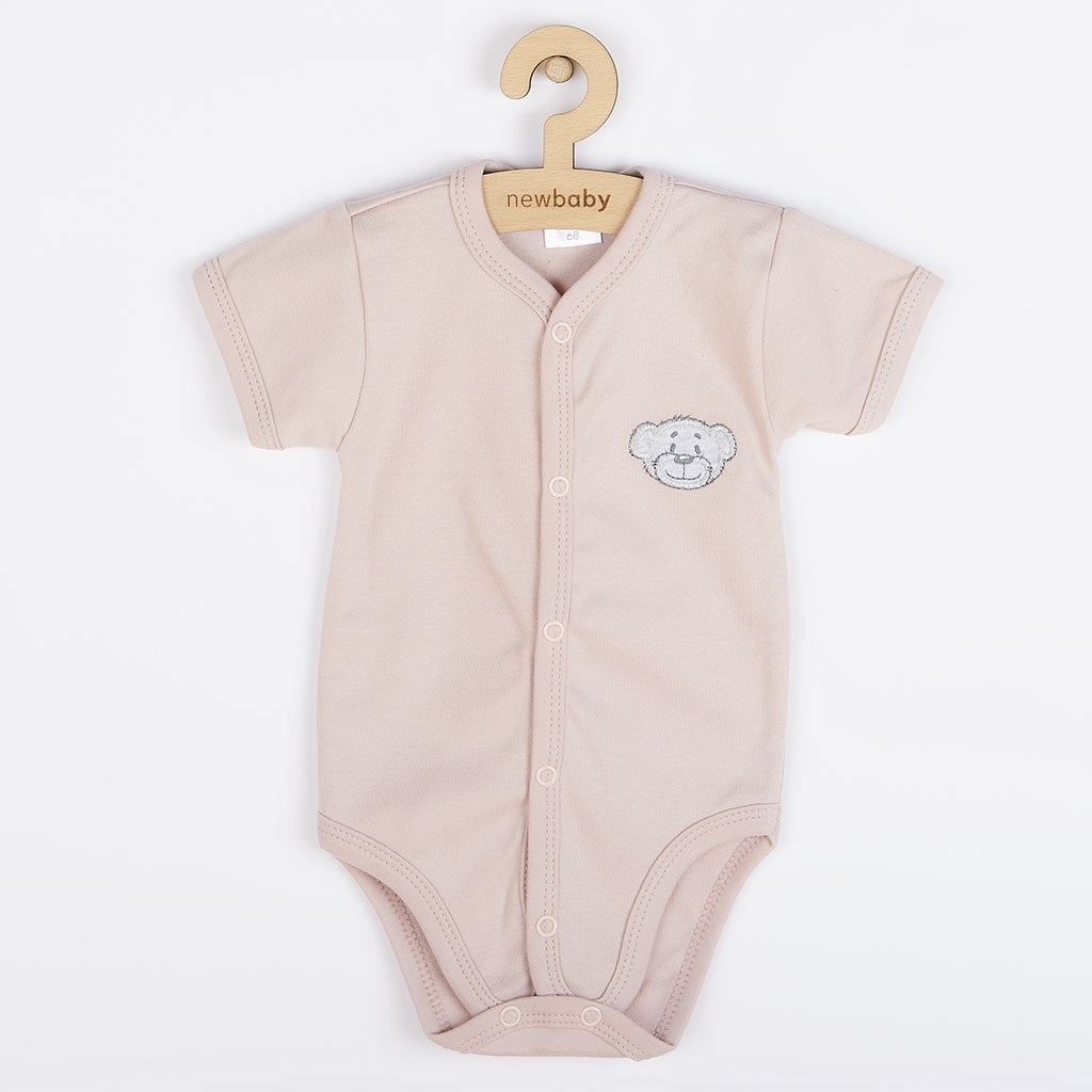 Pomysłowe bawełniane body niemowlęce z krótkim rękawem New Baby BrumBrum. Body zdobi urocza aplikacja z misiem. Aplikacja jest podklejona tkaniną zapobiegającą zarysowaniom. Praktyczne zapięcie na napy po całej długości oraz między nogami znacznie ułatwia ubieranie i przewijanie. Skład: 100% bawełna.