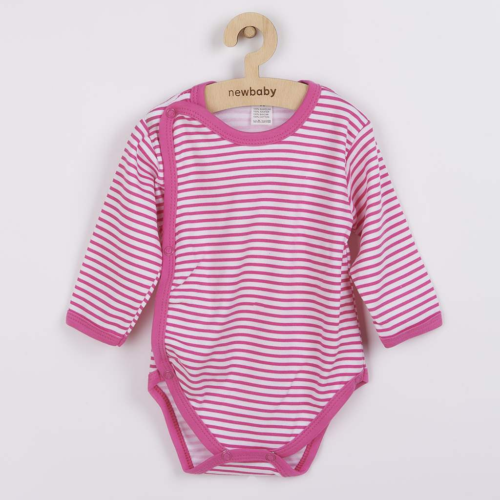 Niemowlęce całorozpinane body New Baby Classic II w amarantowe paski