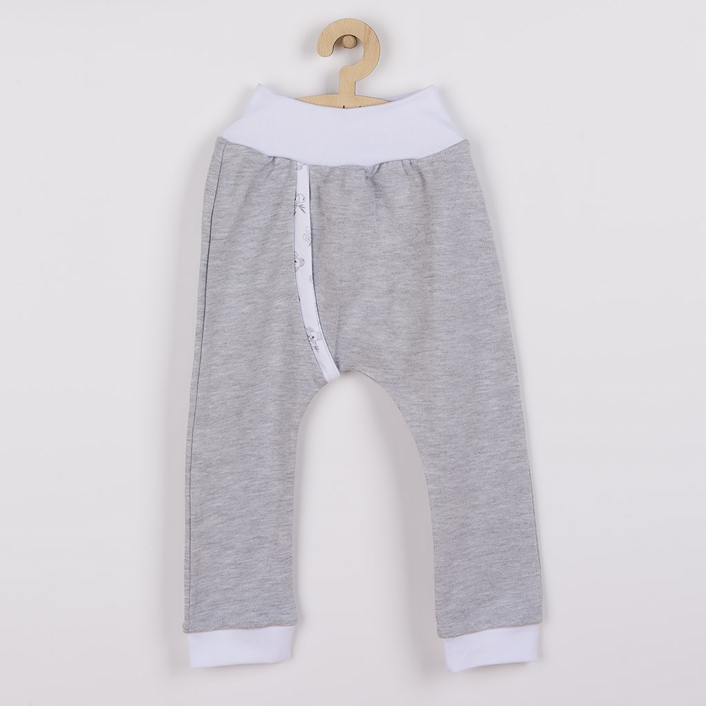 Czarujący, 2-częściowy komplet bawełniany New Baby Koala Bears. Komplet składa się z t-shirtu i spodni dresowych. T-shirt z długim rękawem oraz szarym obszyciem wokół szyi i rękawów ozdobiony jest uroczym obrazkiem misia. Zapięcie na napy na ramieniu ułatwia ubieranie. Jednobarwne spodnie dresowe w nowoczesnym stylu ozdobione są imitacją zapięcia. Posiadają szersze wykończenie w pasie i nogawkach, co dodaje całości stylu. Komplet wykonany z myślą o potrzebach maluszków, z bardzo przyjemnego i delikatnego materiału. Nowoczesny i przydatny element w garderobie maluszka, który ma wszechstronne zastosowanie. 100% bawełna.