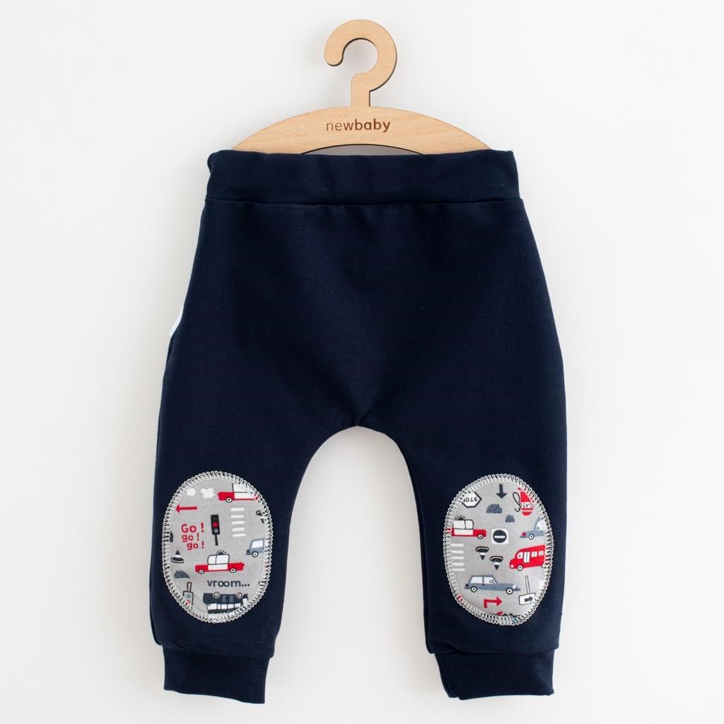 Nowoczesne i praktyczne spodnie dresowe New Baby Go!go!go! Spodnie dresowe posiadają szersze wykończenie z gumką w talii, szerszą lamówkę na nogawkach i łaty na kolanach ozdobione w samochody. Skład: 95% bawełna, 5% elastan. Kolekcją Go! go! go! zawiera: body z krótkim rękawem, bluza z krótkim rękawam, spodnie dresowe i czapka i szorty.
