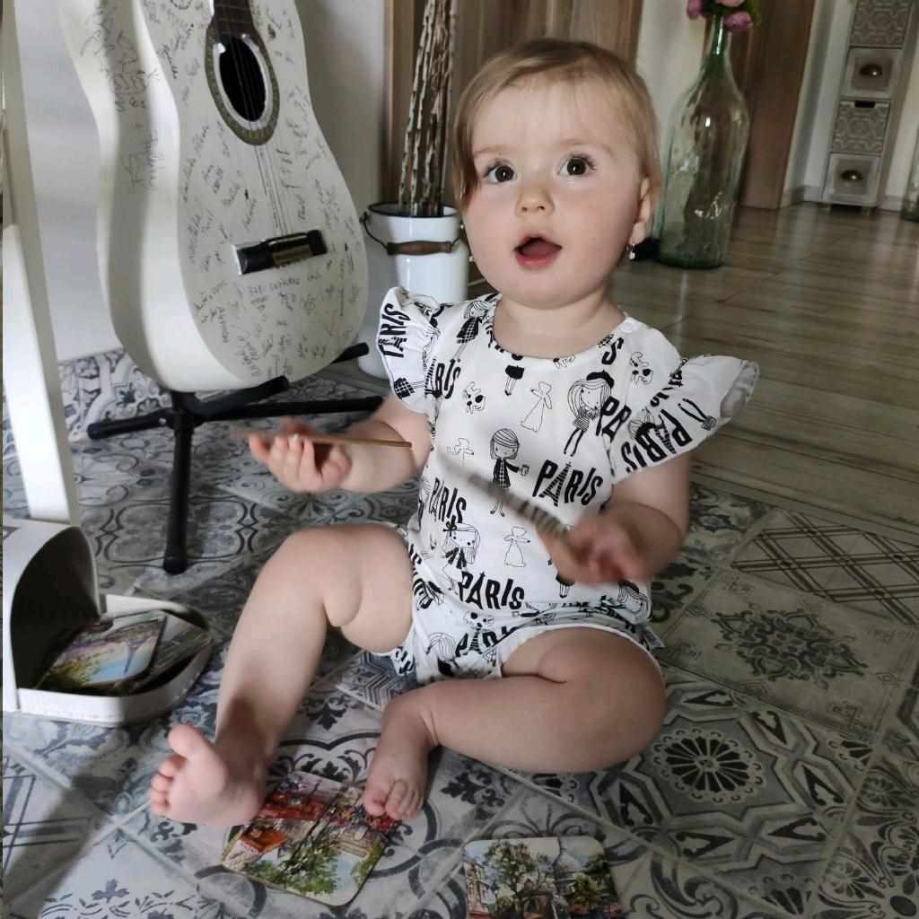 Piękny letni bawełniany pajacyk z krótkim rękawem z falbanką New Baby Paris. Pajacyk ozdobiony wzorem z napisem Paris, uroczymi rękawami z falbanką. Posiada praktyczne zapięcie na napy na ramieniu oraz między nogami, co ułatwia ubieranie i przewijanie. Ładny, letni różany motyw rozświetli buzię każdej dziewczynki. Dzięki wykorzystaniu przyjemnego, miękkiego materiału wysokiej jakości Twoja mała dziewczynka poczuje się niezwykle komfortowo. Skład: 100% bawełna.