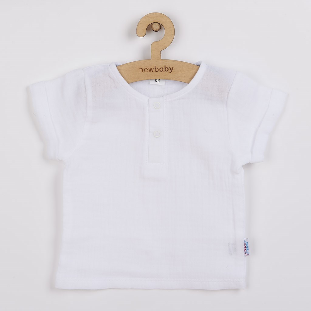 Modny, dwuczęściowy muślinowy komplet niemowlęcy New Baby Summer Nature Collection dla chłopców. Letni zestaw składa się z koszulki i szortów. Koszulka ma krótkie rękawy i doskonały krój. Szorty są ozdobione kieszeniami i mają szerszą gumkę w talii, która nie uciska na brzuch dziecka. Zestaw jest lekki i bardzo wygodny w noszeniu. Zadowolenie klienta jest bardzo ważne dla New Baby i dlatego oferujemy nasz letni komplet chłopięcy wysokiej jakości. Skład: 100% bawełna.