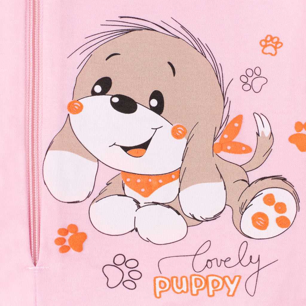 Modny, bawełniany śpiworek niemowlęcy New Baby. Dziecięcy śpiworek jest jednokolorowy z wesołym obrazkiem pieska. Praktyczne zapięcie na suwak na całej długości ułatwia przewijanie i ubieranie. Śpiworek wykonany jest z niezwykle przyjemnego, miękkiego materiału bardzo wysokiej jakości, który jest przyjazny dla niemowląt. Podążamy za modą. Skład: 100% bawełny.