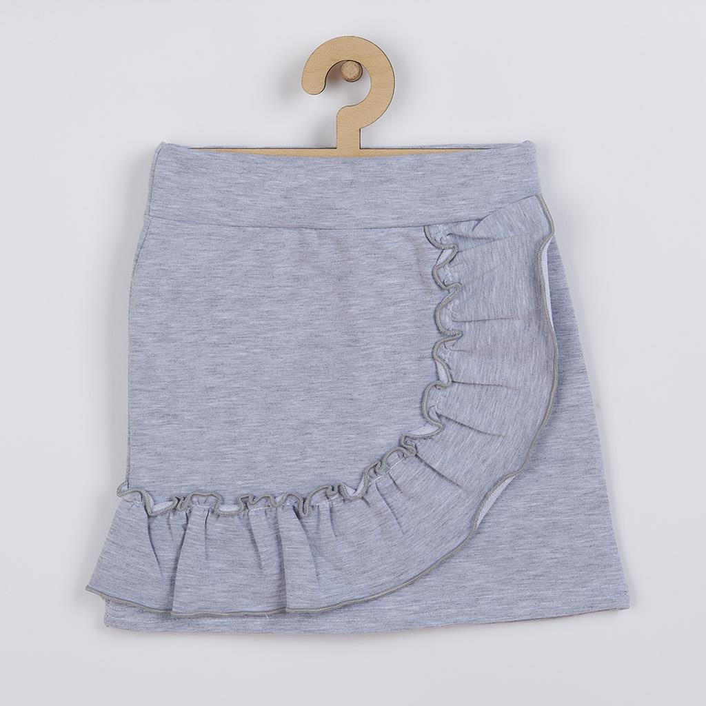 Uroczy i stylowy, 2-częściowy komplet dla dziewczyne New Baby Butterflies. Komplet składa się z t-shirtu i spódniczki. T-shirt z krótkim rękawem, z falbankami ozdobiony jest obrazkiem motyli. Zapięcie na ramieniu na napy ułatwia zakładanie przez głowę dziecka. Szara, melanżowa spódnica ozdobiona jest piękną falbanką, która dodaje całości stylu. W pasie znajduje się szersza gumka, która nie uciska brzucha dziecka. Komplet jest precyzyjnie i jakościowo uszyty i jest wykonany z bardzo wygodnego materiału, w którym Twoja mała modnisia poczuje się bardzo komfortowo. Nowoczesny krój, motylki, falbanki i piękne kolory. Wszystko to można znaleźć w naszym komplecie Butterflies , który jest niezastąpionym elementem dziewczęcej garderoby. Skład: t-shirt: 100% bawełna, spódnica: 95% bawełna, 5% elastan.
